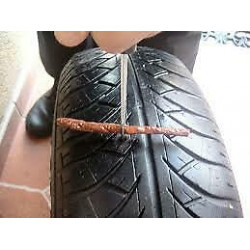 7. Gira media vuelta en cualquier sentido y saca la herramienta (esto se hace para que al sacar la herramienta la mecha se quede dentro del neumático).