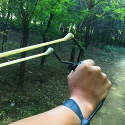 Un tiro de honda plegable de alta velocidad y alta potencia con agarre de muñeca.