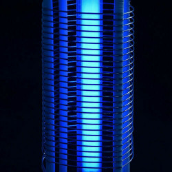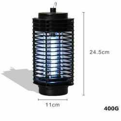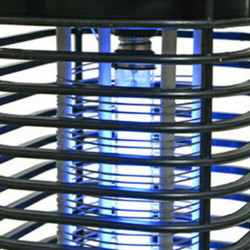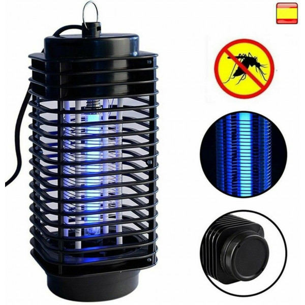 Utiliza luz ultravioleta azul para atraer insectos voladores a una red de metal con carga eléctrica para destruirlos de manera eficiente.