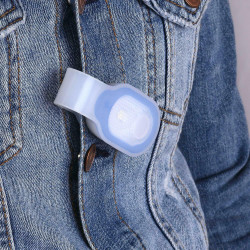 La parte superior e inferior de la silicona está equipada con piezas magnéticas, por lo que se puede enganchar en el cuello de una camisa o al borde del sombrero.