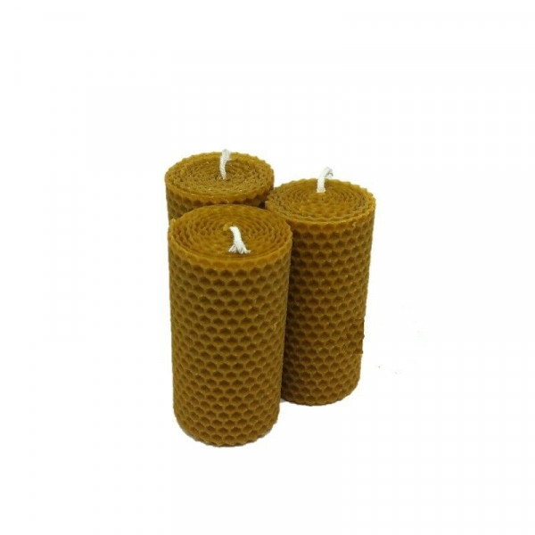 3 Velas de Cera de Abeja de 10 x 5 cm con olor a Miel Pura