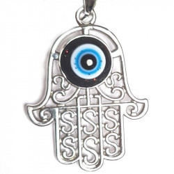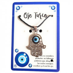 Colgante Mano de Fátima y Ojo Turco Amuleto HAMSA HAND Talismán Mal de Ojo Azul