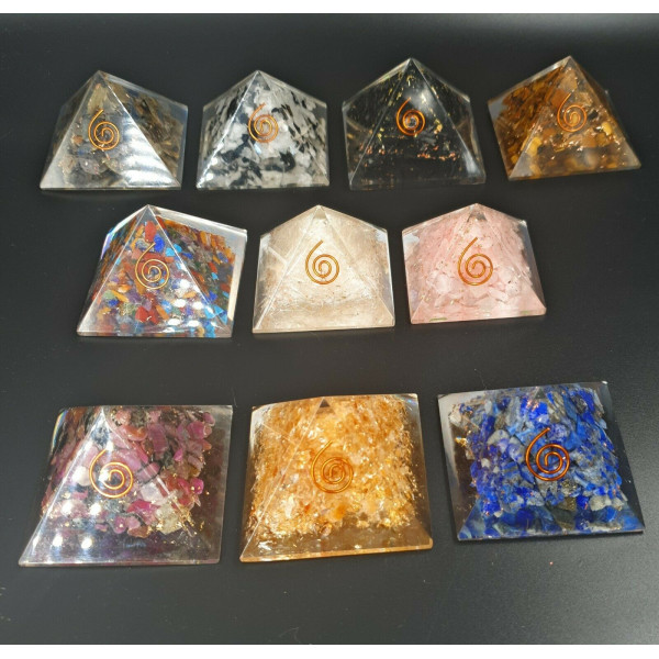 Pirámide de Resina Orgonita con Minerales